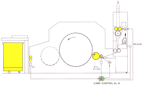 The Autoleveller AL-07 can measure the tuft thickness and control the speed of feeding roller immediately to maintain and ensure a uniform feeding quantity passing through the licker-in cylinder. This procedure not only can effectively control the sliver variation, but also can maintain the highest state of carding results. In addition to control the tuft thickness, the system can detect the sliver weight and transmit the signal to computer immediately to form a combination of closed-loop and open-loop system.